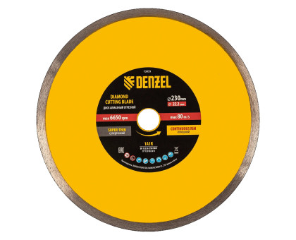 Диск алмазный отрезной 230 х 22,2 мм, сплошной, супертонкий, горячий пресс, мокрое рез//Denzel 73055